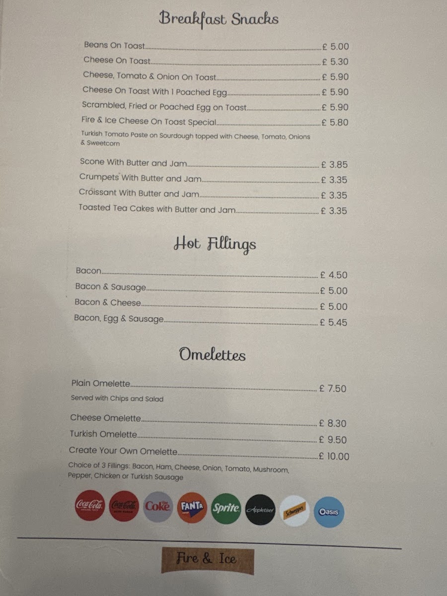 Fire & Ice Café Bistro Menu